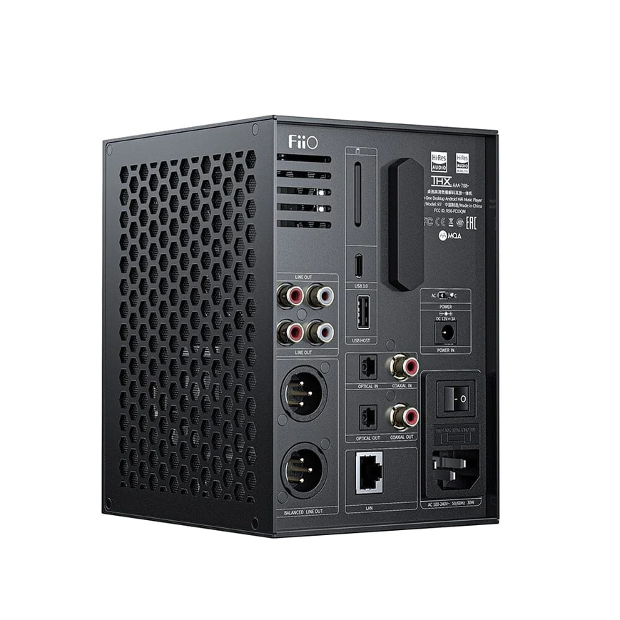 Крім того, є коаксіальний та оптичний входи та виходи. Також є слот для карти пам’яті microSD щоб використовувати Fiio R7 для локального відтворення. Слот USB-C на задній панелі дозволяє підключати пристрої для USB Audio. Зокрема, використовувати пристрій як джерело цифрового сигналу для підключення зовнішнього USB ЦАПа, тощо. USB-A дозволяє підключати периферійні пристрої. Наприклад, зовнішній жорсткий диск, клавіатуру, тощо.