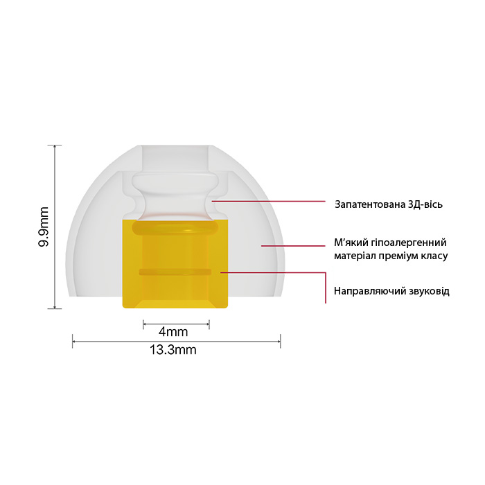 Ергономічний дизайн з можливістю вигину у всіх напрямках та відповідно до вушного каналу. Ідеально підходить для навушників зі специфічною посадкою. Преміальний силікон софт-тач забезпечує комфорт та довговічність.